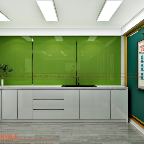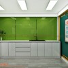 Thiết kế phòng tiểu phẫu gọn gàng sạch sẽ, thông khí tốt, đồ nội thất đơn giản. Bàn lavabo kết hợp tủ để dụng cụ y tế thiết kế gọn gàng. Bề mặt sơn 2k bóng sáng và dễ lau chùi.