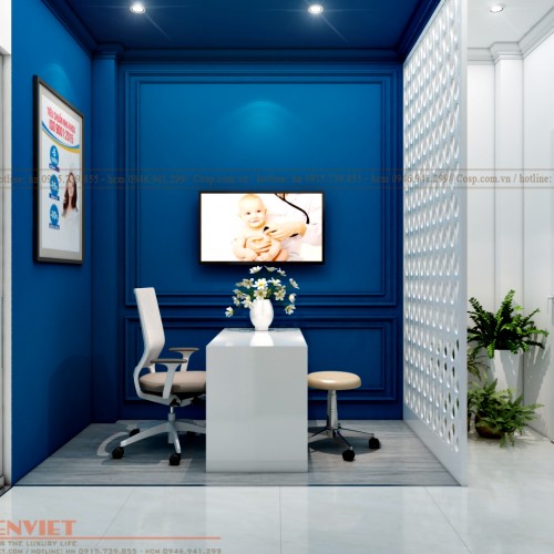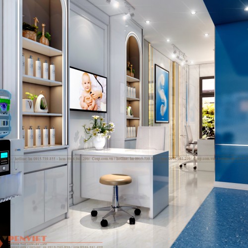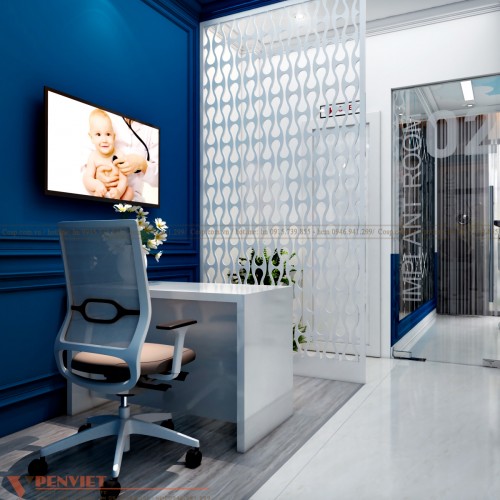 Penviet đã tư vấn cho anh Thắng lựa chọn mẫu thiết kế phòng khám phong cách hiện đại, sang trọng. Lấy gam màu trắng, xanh làm gam màu chủ đạo. Các sản phẩm nội thất sử dụng chất liệu cao cấp được bố trí khoa học làm nổi bật không gian và gây ấn tượng mạnh với khách hàng.