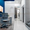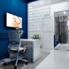 Tận dụng hành lang trống, kiến trúc sư đã thiết kế phòng tư vấn cho khách hàng trước và sau khi thực hiện thăm khám hoặc tiểu phẫu. Sử dụng vách ngăn gỗ MDF cốt xanh Thái Lan chống ẩm cắt CNC, nẹp bo viền gỗ tự nhiên để đảm bảo độ cứng cho vách. Lựa chọn này không chỉ giúp tối ưu không gian mà còn mang lại lại sự thông thoáng cho thiết kế phòng khám nha khoa này.