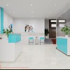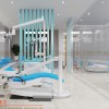 Phong cách thiết kế hiện đại sử dụng tông màu trắng và xanh mang lại cho khách hàng cảm giác thư thái giảm bớt những cơn đau.