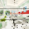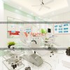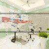 Để tạo chút điểm nhấn, tránh căn phòng trở nên khô khan, cứng nhắc, những bức tranh với hình quy trình, dịch vụ khám răng được gắn thêm trên tường. Những bức tranh này đều được làm từ khung nhựa có gắn tranh in PP ở phía trên.