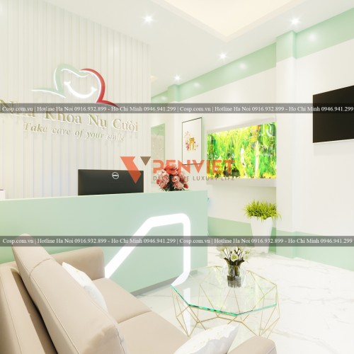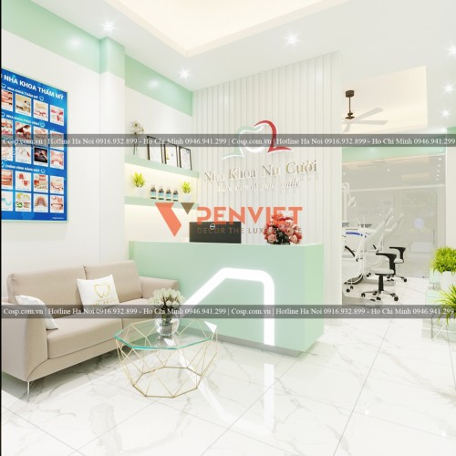 Tiếp nhận những thông tin mặt bằng cùng yêu cầu từ phía chủ đầu tư, KTS của Nội thất Cosp đã hoàn thành bản vẽ 3D cho dự án thiết kế phòng khám nha khoa Thu Trang. Sau khi nhận bàn giao bản vẽ thiết kế, chị Trang đã rất hài lòng và muốn thi công ngay cho kịp ngày khai trương. Cùng chúng tôi tham quan một vòng mẫu thiết kế phòng khám nha khoa này qua những hình ảnh 3D dưới đây nhé.