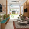 Hệ thống quầy kệ tủ ghế ngồi chờ được sử dụng chủ yếu là gỗ công nghiệp với độ bóng cao chống ẩm mốc, mối mọt mà chi phí lại ở mức vừa tầm. Cây xanh cũng được sử dụng nhiều để mang lại không gian thông thoáng.