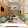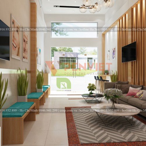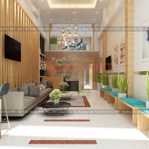 Thiết kế phòng khách, tiếp tân thiết kế liền mạch cùng 1 không gian giúp nhân viên của phòng khám tiếp bệnh nhân và lấy thông tin thuận tiện và nhanh chóng hơn.