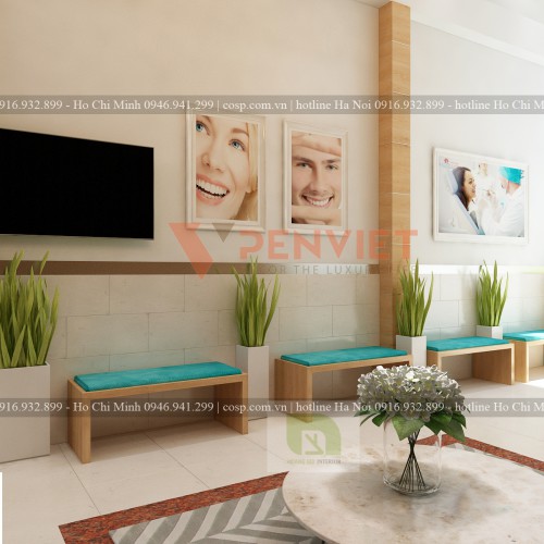 Hệ thống ghế ngồi cho khách hàng được thiết kế dọc theo chiều dài phòng khám giúp phòng khám tiếp đón được nhiều bệnh nhân nhất.