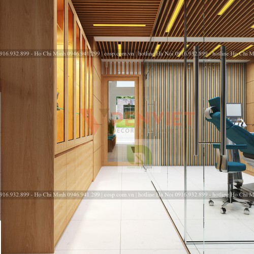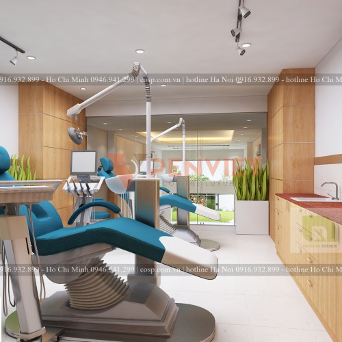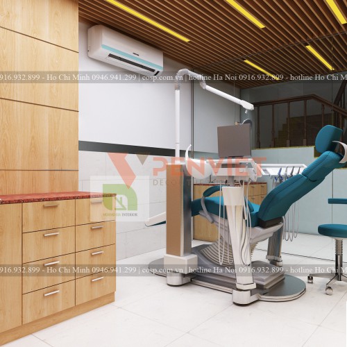 Phòng khám được thiết kế với tông sử dụng tông màu sáng gần gũi tạo cảm giác an toàn cho những bệnh nhân đến đây. Nội thất gỗ ở hầu hết khắp nơi tạo sự ấm áp, gần gũi. Trong mỗi phòng thăm khám luôn được bố trí các tủ kệ để đựng đồ vật dụng y tế giúp tiết kiệm tối đa không gian cho phòng khám