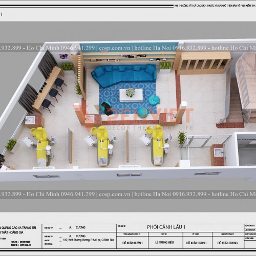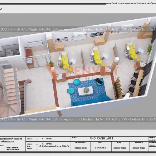 - Lầu 1: Phòng khách tư vấn khách hàng, phòng thăm khám
