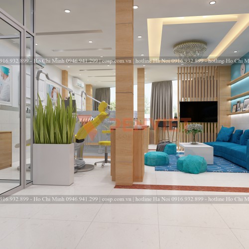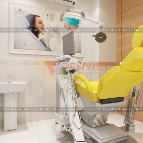 Bởi vì phòng khám nha khoa chính là nơi diễn ra các hoạt động liên quan đến sức khỏe nên các kts phải lưu ý để thiết kế và thi công làm sao để có thể đem đến cho mọi người một sự thoải mái và sạch sẽ nhất. Ở phòng khám này kiến trúc sư tinh tế lựa chọn tông màu nhẹ nhàng trắng và vàng gỗ, xanh để mang lại cảm giác an toàn cho khách hàng.