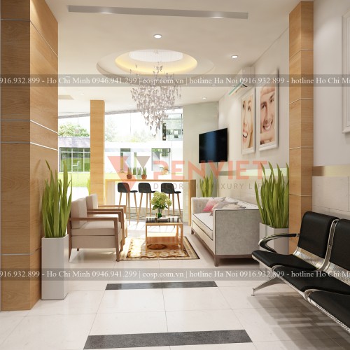 Khu vực tiếp tân được thiết kế được thiết kế sang trọng và thân thiện vừa giúp tạo cảm giác thân thiện vừa giúp tôn lên bộ mặt của phòng khám.