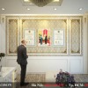 Biển tên được làm bằng chất liệu Mica phát sáng nổi bật trên nền hoa văn màu vàng sang trọng, tạo được ấn tượng đến với khách hàng.