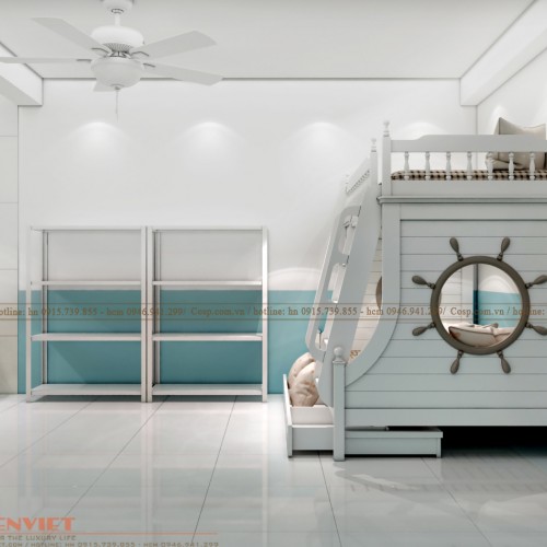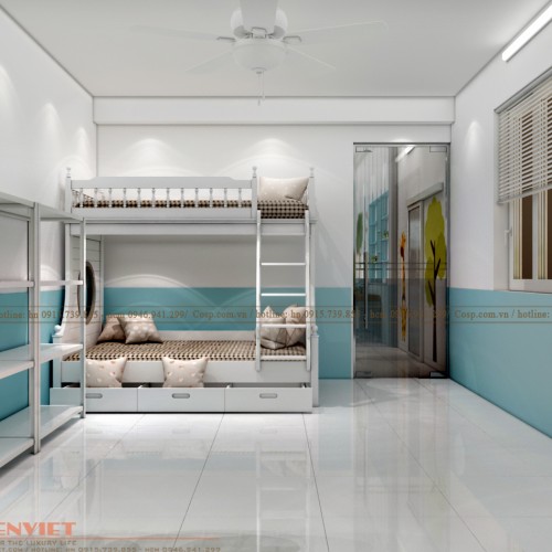 Thiết kế phòng nghỉ cho khách sử dụng giường ngủ tầng thiết kế kiểu dáng dễ thương được trẻ nhỏ vô cùng yêu thích.