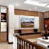 Hệ thống tủ kệ trưng bày được thiết kế sát tường nhiều ngăn nhỏ, chất liệu gỗ công nghiệp được xử lý kỹ càng đảm bảo an toàn cho người sử dụng.