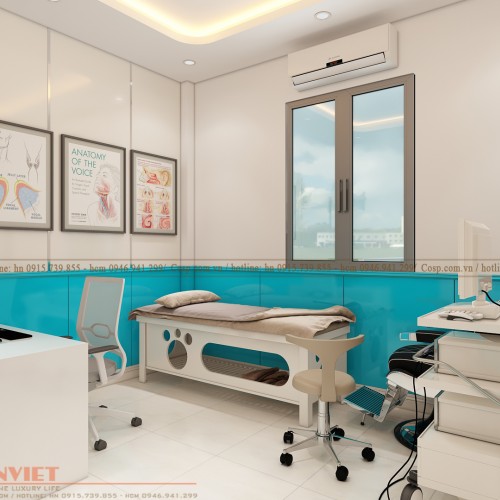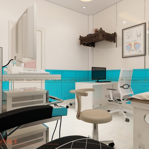 Nội thất: Đồ nội thất phòng khám chủ yếu bằng chất liệu Gỗ MDF cốt xanh Thái Lan chống ẩm được xử lý kỹ càng đảm bảo an toàn cho người sử dụng. Mọi góc cạnh của đồ nội thất đều được xử lý bo góc mềm mại tránh gây tổn thương khi có va chạm.