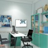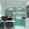Chúng tôi sắp xếp khu vực làm việc, tư vấn với bàn làm việc bằng Gỗ MDF phủ melamine tích hợp tủ tài liệu nhỏ chân bàn và ghế ngồi chân xoay mang đến sự thuận tiện, thoải mái cho y bác sĩ.