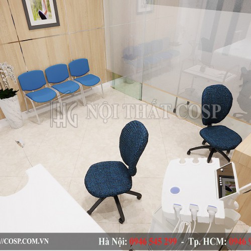 Phía bên trong là phòng chờ dành cho bệnh nhân tới khám. Hai hàng ghế chờ được đặt sát tường để giữ thoáng cho khu vực ở giữa – thuận tiện cho việc di chuyển.