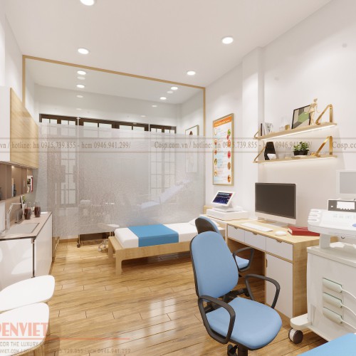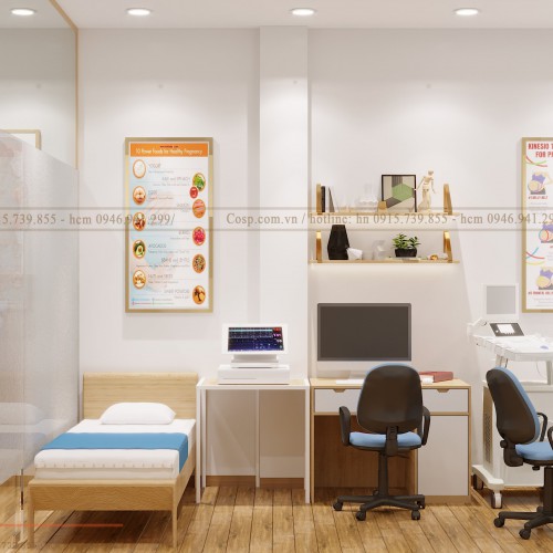 Nhìn chung thì mẫu thiết kế phòng khám phụ sản BS Hưởng- HN đã KTS Nội thất COSP tạo ra với hình hài đẹp. Hãy liên hệ với chúng tôi nêu bạn có nhu cầu thiết kế nội thất nhé.