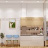 Không gian phòng này nhìn chung rất nhiều nội thất. Tuy chỉ có diện tích là 30m2 nhưng với sự chuyên nghiệp của kiến trúc sư thiết kế thì phòng cũng đỡ lộn xộn hơn nhiều. Tại đây, Vách kính ngăn phòng được thiết kế phía bên trong dày 10ly, bộ phụ kiện: Bản lề kính, ray cửa lùa, tay nắm đi kèm.