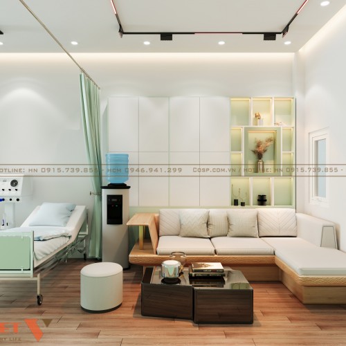 Các chi tiết nội thất được sắp xếp hài hòa, khoa học mang đến sự chuyên nghiệp cho phòng khám. Từ ánh sáng đến các món đồ nội thất, giường nằm, bàn ghế, tủ trưng bày… đều được tính toán tỉ mỉ, không quá rườm rà mà vẫn đảm bảo đủ công năng sử dụng.