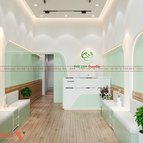 Sở hữu diện tích chỉ 66m2 nhưng mẫu thiết kế phòng khám phụ sản Greenlife mang phong cách hiện đại đầy thu hút và nổi bật. Với gam màu xanh, trắng chủ đạo mang đến cho phòng khám vẻ đẹp nhẹ nhàng, tinh tế. Bạn đọc có thể khám phá thêm một số điểm nổi bật của phương án trang trí nội thất này qua nội dung dưới đây.