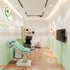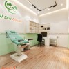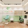 Ngay cửa ra vào được bố trí dãy ghế sofa hiện đại màu xanh nhạt đồng điệu với gam màu quầy lễ tân, màu sơn tường. Đây là nơi tiếp đón và tư vấn khách hàng đến sử dụng dịch vụ tại phòng khám. Quý khách sẽ cảm thấy sự nhẹ nhàng, thoải mái với cách sử dụng màu sắc pastel dịu nhẹ này.