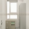 Để ngăn cách khu vực giường nằm siêu âm và bàn ghế ngồi chờ thì PenViet có sử dụng rèm che. Tấm rèm kéo nhẹ nhàng mang đến sự riêng tư cho phụ sản khi thăm khám. Phía sau bộ bàn ghế ngồi được bố trí tủ trưng bày với các món đồ nhỏ xinh, bắt mắt. Khu vực này dành cho người nhà hay các bà bầu chờ tới lượt thăm khám tạo sự thoải mái tối đa.