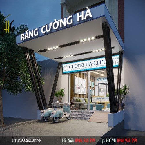 Thiết kế mặt tiền phòng khám răng Cường Hà Clinic