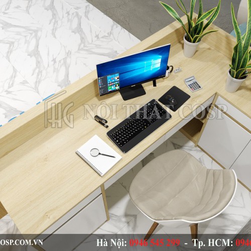 Quầy lễ tân được làm từ gỗ công nghiệp melamine cao cấp với kiểu dáng hiện đại và hình thức trang trí bắt mắt.