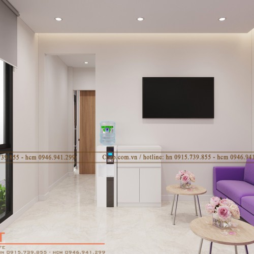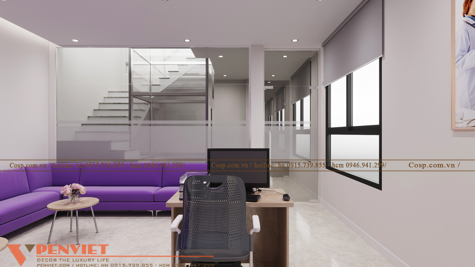 Thiết kế nội thất phòng khám sản phụ khoa mang lại cảm giác mới mẻ và độc đáo với sự kết hợp hai màu sắc trắng và tím nhạt. Sự kết hợp này mang lại những hiệu quả tối đa mà chủ đầu tư mong muốn.