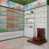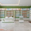 Khu vực nhà thuốc được bố trí các tủ cao ở sát tường giúp tận dụng tối đa không gian cho việc trưng bày thuốc. Các tủ Gỗ MDF cốt xanh chống ẩm phủ melamin cửa kính lùa được setup thêm đèn led thanh hắt sáng làm nổi bật các mặt hàng cũng như tạo sự thu hút cho không gian này.