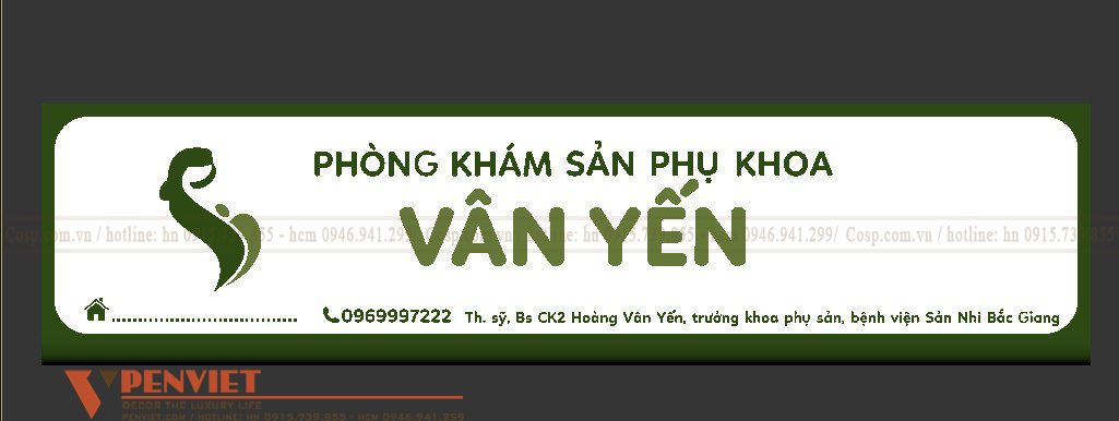 Ở mặt tiền phòng khám sản phụ khoa Vân Yến, chúng tôi thiết kế hệ biển quảng cáo bao gồm biển chính lớn và biển ngang, dọc phía dưới. Hệ biển chúng tôi sử dụng khung sắt hộp ốp alu trắng để nâng đỡ hệ biển này, đảm bảo độ bền và tính thẩm mỹ. Nổi bật trên bộ khung là bộ nhận diện thương hiệu bằng chân formex, mặt mica in UV phát sáng mặt.