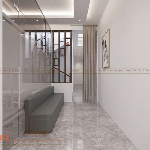 Tiếp đến là dãy hành lang của phòng khám sản phụ khoa Vuông Tròn. Tại đây, PenViet cũng bố trí 1 dãy ghế sofa dài để bệnh nhân có thể ngồi chờ đợi tới lượt thăm khám một cách thoải mái. Hơn nữa lối đi cũng khá rộng rãi, giúp các y bác sĩ và bệnh nhân thuận tiện khi di chuyển.