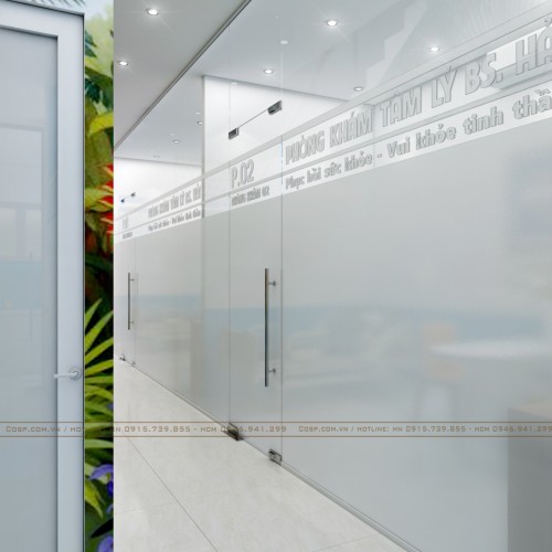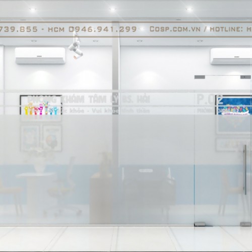 Phòng tư vấn được bố trí phù hợp, sử dụng cửa kính cường lực dán decal giúp khách hàng cảm thấy sự riêng tư, thoải mái cũng như giúp các bác sĩ có thể tập trung làm việc.