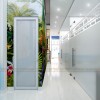 Giải pháp sử dụng cửa kính cường lực cho toàn bộ mặt tiền giúp phòng khám này tận dụng được nguồn ánh sáng tự nhiên, khiến không gian trở nên rộng rãi, thông thoáng. Đây là một gợi ý đối với những mặt bằng kinh doanh có mặt tiền nhỏ mà có chiều dọc khá sâu.