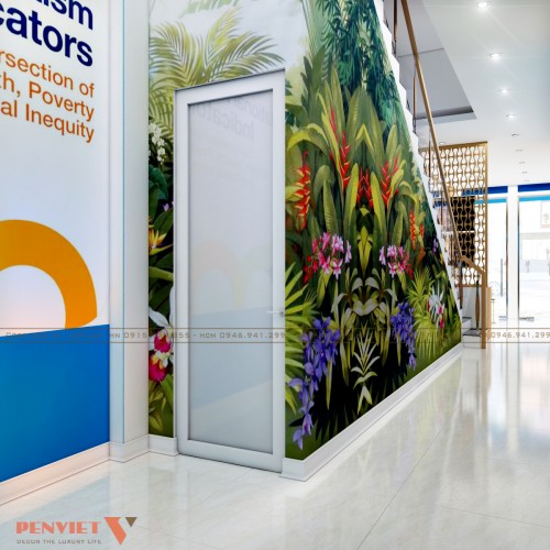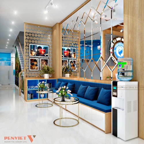 Hướng đến mục tiêu ban đầu đề ra, penviet đã bố trí hệ nội thất bao gồm: quầy lễ tân, bàn ghế kết hợp bàn trà tiếp khách, tủ kệ trưng bày, tủ tài liệu với chất liệu gỗ công nghiệp thông dụng.