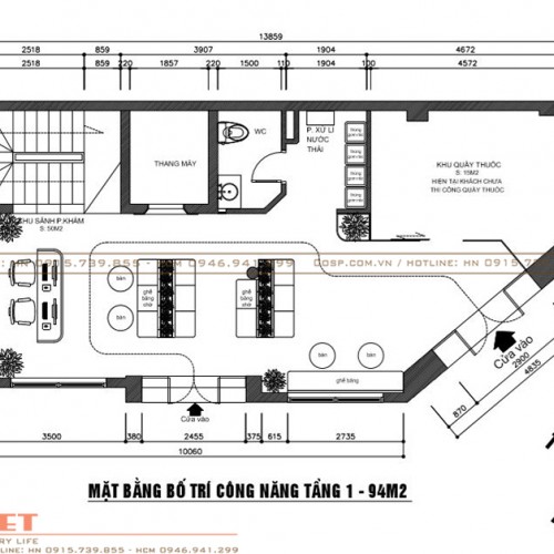 · Tầng 1: Nơi đón tiếp bệnh nhân và quầy thuốc.