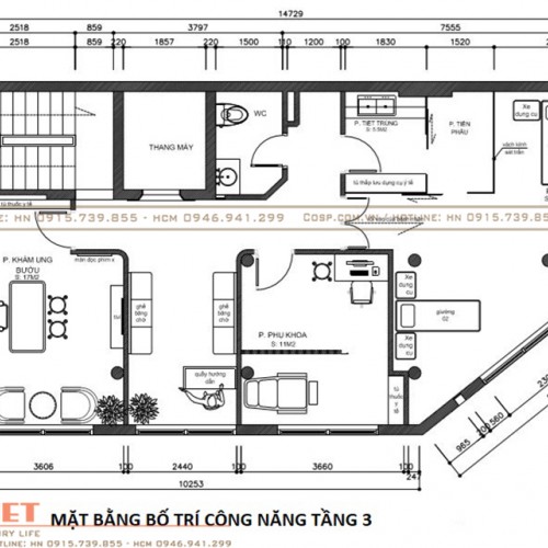 · Tầng 3: Gồm có phòng tiểu phẫu, phòng ung bướu, phòng khám sản…