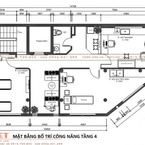 · Tầng 4: Gồm phòng xét nghiệm, phòng nội soi tiêu hóa, phòng lưu bệnh