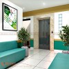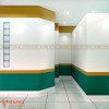 Khu vực phòng chờ được bố trí y như tầng 2, nổi bật với gam màu trắng và xanh. Nội thất gồm quầy hướng dẫn, bằng gỗ MDF cốt xanh chống ẩm. 2 ghế băng dài bố trí 2 bên.
