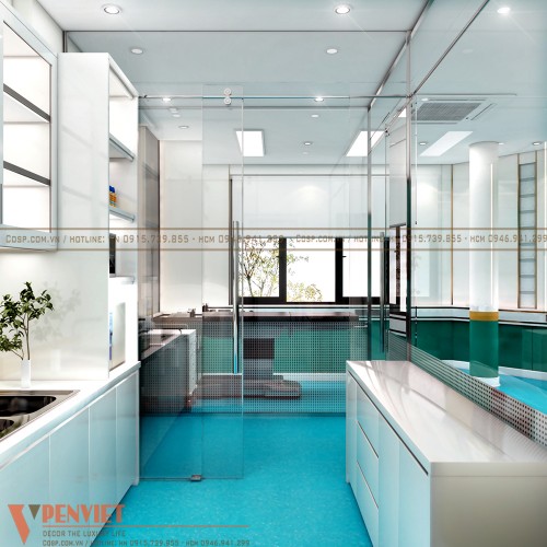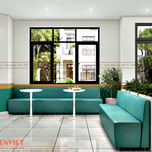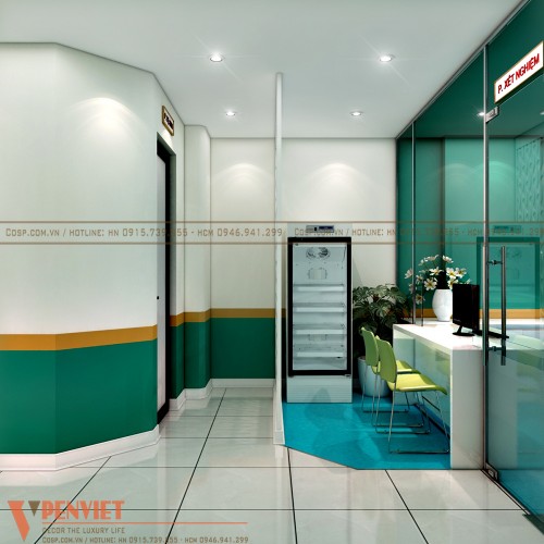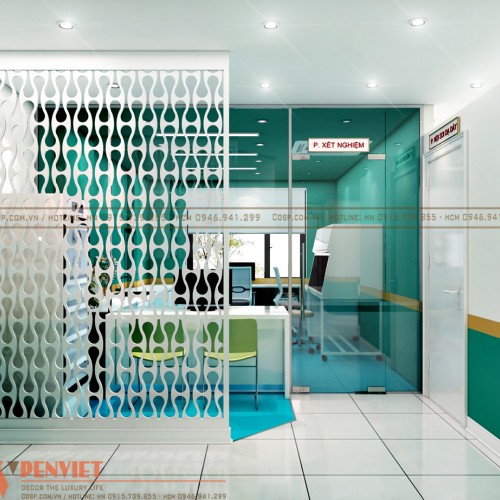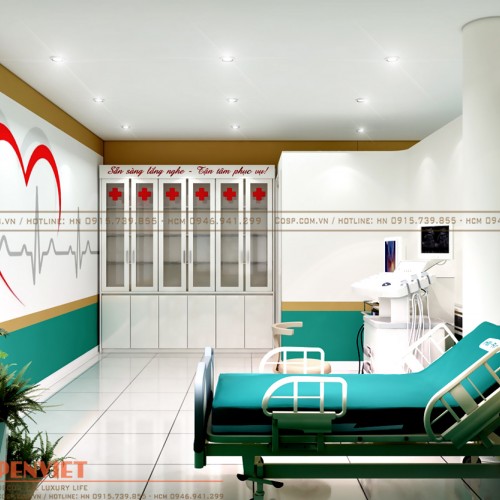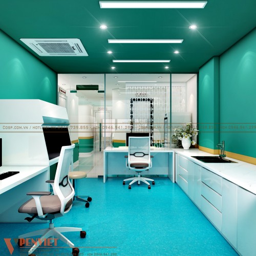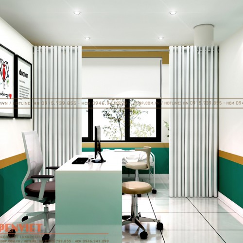 KTS Penviet đã nghiên cứu và am hiểu sâu sắc các tiêu chuẩn trong thiết kế phòng khám. Lựa chọn gam màu trắng là chủ đạo kết hợp với màu xanh mát.