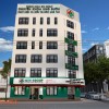 Logo của bệnh viện nổi bật trên tầng cao nhất của tòa nhà. Không gian được phủ màu xanh mát trong lành, mát mắt. Thêm vào đó với các ô của kính lớn vừa giúp cho không gian bên trọng trông rộng rãi, thoáng đãng, đồng thời trong quá trình điều trị những người bệnh vẫn có thể phóng tầm mắt ra không gian phía xa. Tại đây dù ở trên các tầng cao, chúng ta vẫn có thể tương tác giao hòa với thiên nhiên xung quanh.