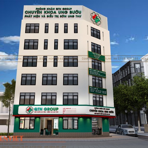 Thiết kế phòng khám ung bướu QTN Group với quy mô diện tích 456m2 được xây dựng tại Thanh Trì, Hà Nội. Yêu cầu của chủ đầu tư đối với KTS Penviet là thiết kế phòng khám phục vụ các mục đích chính khám chữa bệnh.