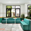 Ghế băng chờ bằng khung gỗ tự nhiên kết hợp với gỗ CN, bọc da màu xanh
