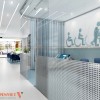 Thiết kế cửa sổ hình mái vòm độc đáo cùng các mành rèm màu ghi sang trọng vô cùng đẹp mắt. Nhân viên sẽ có thêm nhiều hứng khởi đưa ra những ý kiến, giải pháp mới để cải thiện dịch vụ cho phòng khám, tạo uy tín lớn trên thị trường.