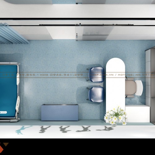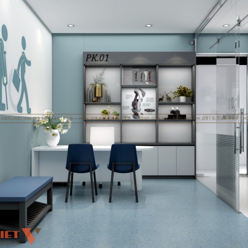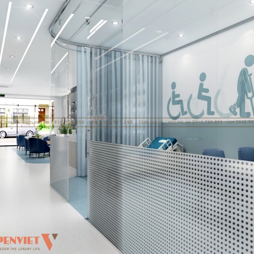 Nội thất sử dụng với gam màu trắng và xanh kết hợp, vừa mang đến sự sạch sẽ vừa tạo niềm hy vọng cho bệnh nhân. Cảm giác thoải mái và an tâm khi khám chữa bệnh sẽ giúp ích rất nhiều cho việc hồi phục bệnh.