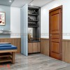 Ngay lối ra vào được PenViet setup tủ dụng cụ nhỏ xinh bằng gỗ MDF bền bỉ để bảo quản các đồ dùng phục vụ quá trình điều trị vật lý trị liệu. Tủ được phân chia nhiều tầng đảm bảo việc lưu trữ vật dụng hiệu quả, tạo sự ngăn nắp.