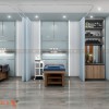 Tại tầng 1 có 2 phòng khám bệnh với thiết kế nội thất tương đồng nhau. Phòng khám bệnh có bố trí 1 giường nằm và 1 bàn khám, tư vấn cho bệnh nhân. Cách bố trí nội thất này phù hợp tiêu chuẩn khi thiết kế phòng khám mà Bộ Y tế đưa ra.