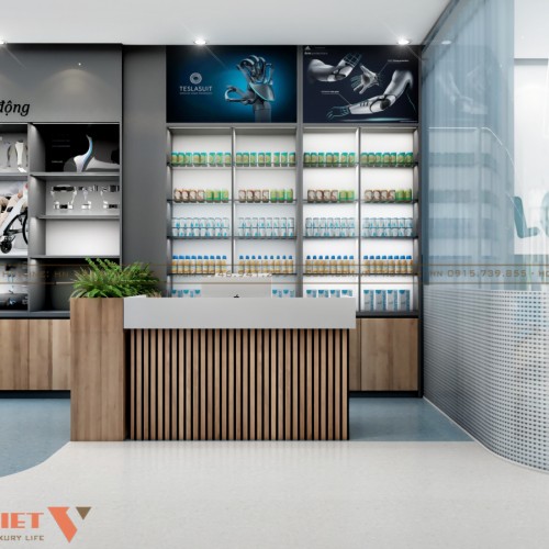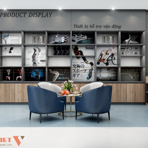 Tủ kệ trưng bày các sản phẩm hỗ trợ vận động của phòng khám