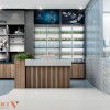 Tiếp đến cũng là một quầy tư vấn khác được bố trí gần lối đi vào bên trong phòng khám bệnh để hỗ trợ khách hàng. Quầy có thiết kế đường lam gỗ kẻ sọc thân thiện, tạo cảm giác gần gũi cho bệnh nhân.