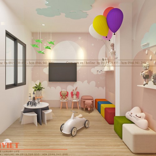 Thiết kế phòng tiêm ngừa Thiên Phú với đối tượng chủ yếu là các bé nhỏ. Do đó, kiến trúc sư sử dụng phong cách thiết kế hiện đại, tông màu nhẹ nhàng và đáng yêu mang lại sự thoải mái cho cả bố mẹ và bé nhỏ.
