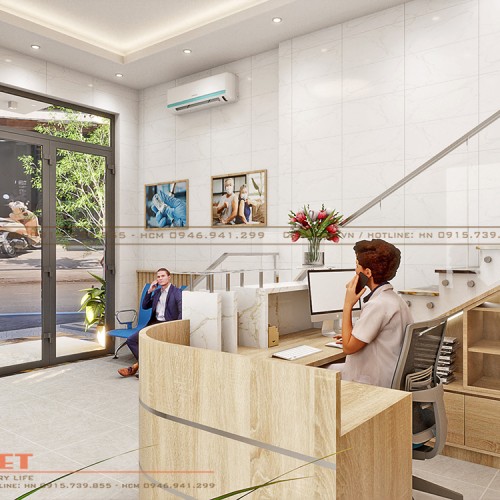 Sảnh phòng khám là nơi đón tiếp bệnh nhân tới tư vấn khám chữa bệnh nên đòi hỏi được thiết kế hiện đại, đáp ứng công năng và tạo sự thoải mái tối đa. Đứng trước nhu cầu thiết kế sảnh chờ trung tâm tiêm chủng Vacxin Bs.Thịnh của chị Hà, đội ngũ kiến trúc sư của PenViet vô cùng sáng tạo để mang đến giải pháp thiết kế ấn tượng cho không gian.